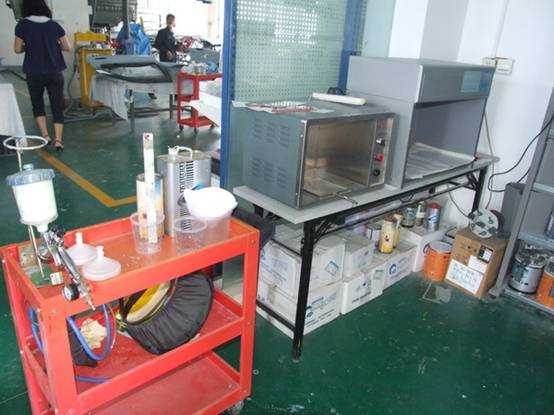 调漆所用到的工具、色卡纸、烤箱、与灯箱