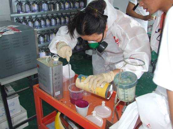 老师们进行调漆练习