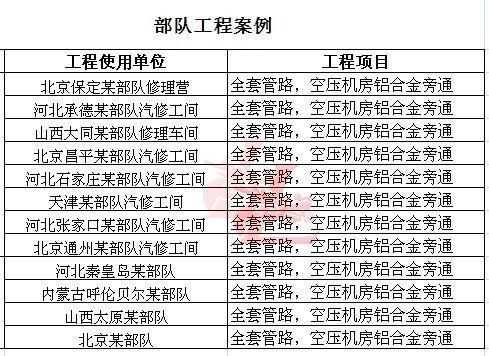 部队工程案例总表,全套管路