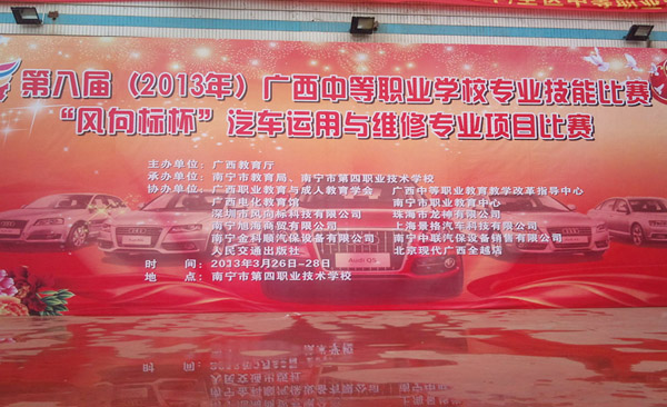 2013年3月28日,珠海龙神有限公司协办的第八届(2013年)全区中等职业学校专业技能比赛,“风向标”杯汽车运用与维修专业项目比赛广西赛区在南宁市第四职业技术学校鸣锣收兵,84人(42组)载誉而归。