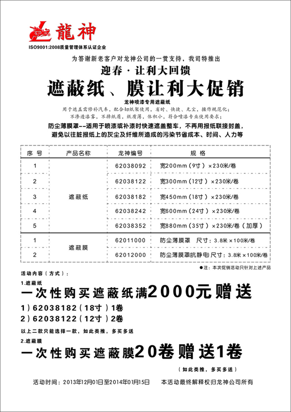 2013年遮蔽纸、膜促销方案
